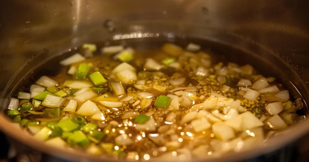 Heat olive oil in a large pot over medium heat. Add diced onion, celery, and carrots. SautΓ© for 3β4 minutes until softened. Add minced garlic and cook for another 30 seconds until fragrant.
