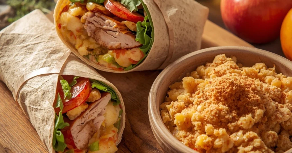 Why it works: The savory turkey wrap contrasts beautifully with the sweet crisp, creating a lunchbox-friendly combination.