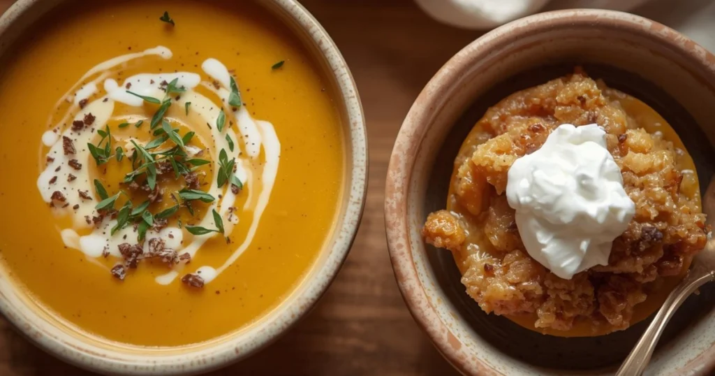 Why it works: Soup and apple crisp make a cozy, balanced lunch with sweet and savory harmony.